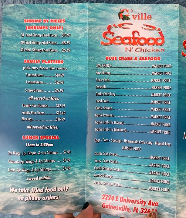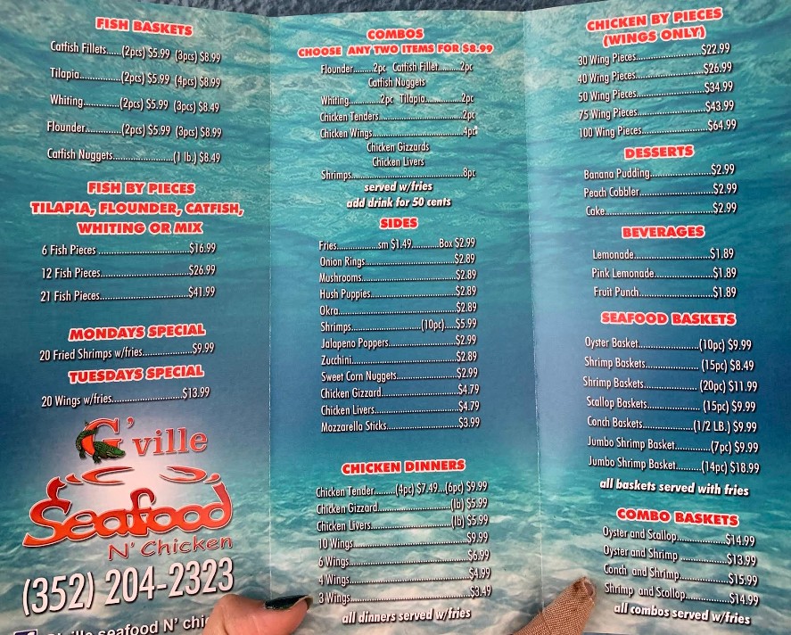 Welcome to G'ville Seafood N' Chicken, where bold flavors meet comfort food favorites. Our Bikini Beans G'ville Seafood N' Chicken menu brings together freshly prepared seafood, golden fried chicken, and satisfying sides made to please every craving. Whether you’re stopping in for a quick bite or a hearty meal, we focus on quality ingredients, generous portions, and flavors that keep customers coming back. Discover why locals love our seafood and chicken specialties.